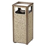 RUBBERMAID Steel Stone Panel Receptacles - Brown frame/desert brown panels Overviews RUBBERMAID Steel Stone Panel Receptacles feature a class A fire rating and comply with ADA standards.Stone panel receptacles contain over 20% post-consumer recycled steel. (A) has removable one-piece top. (B) has a hinged top. (C) and (D) have removable one-piece sand tops. All models include Germ-Fighter antimicrobial, rigid plastic liners. Heavy-gauge, galvanized steel with natural stone aggregate panels. 15-year limited warranty. UV-stabilized powder coated finish. All receptacles, except (B), ship via small package carrier.NOTE: Optional retrofit weather urn tops with self-contained cigarette depository convert models (C) and (D) into enclosed ash receptacles, sold separately. ![]() RUBBERMAID Steel Stone Panel Receptacles - Brown frame/desert brown panels Features